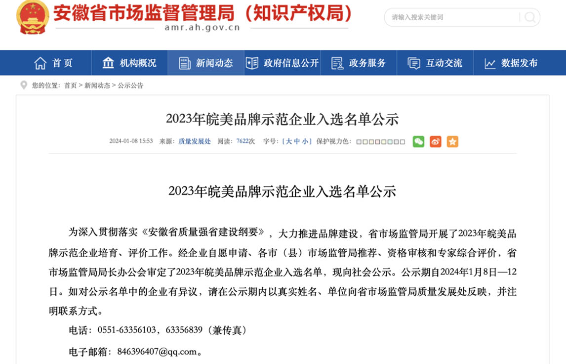 国内外市场,提升品牌竞争力和影响力,发挥“品牌示范企业”的带头作用,为美好安徽建设贡献更多力量!